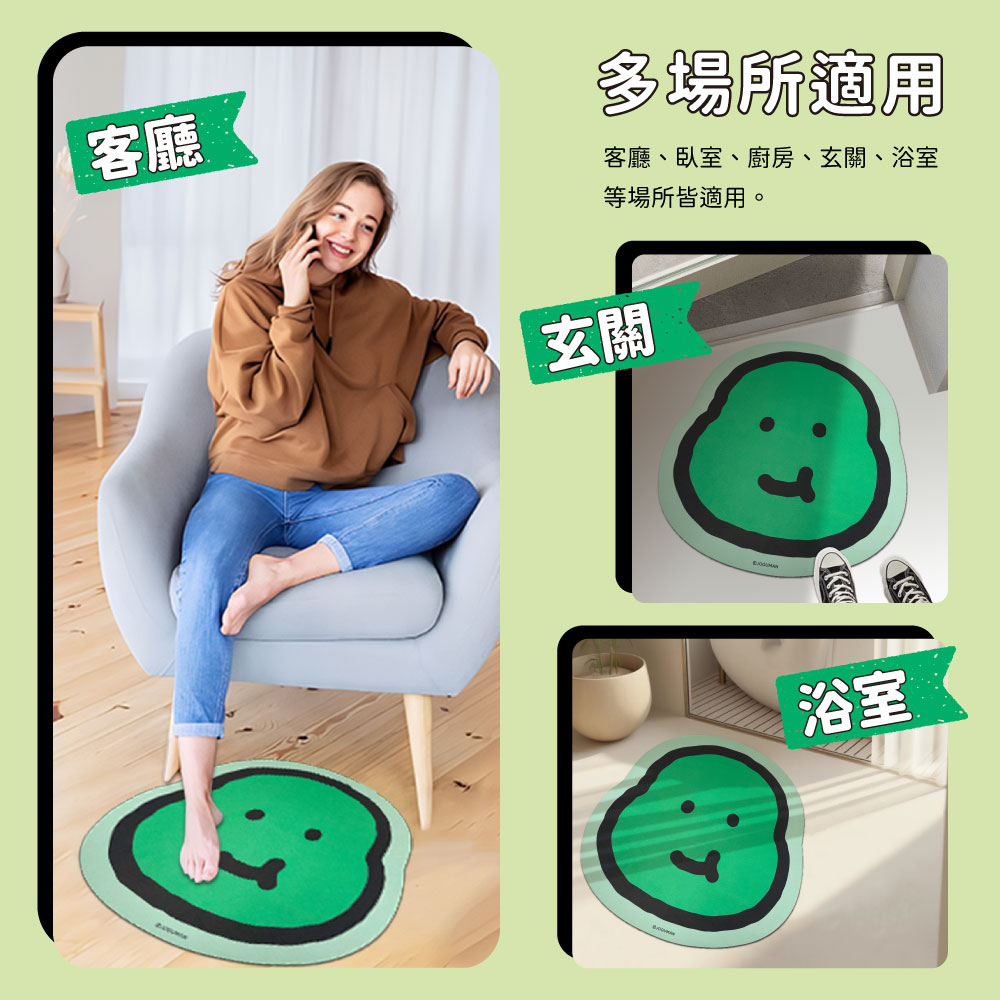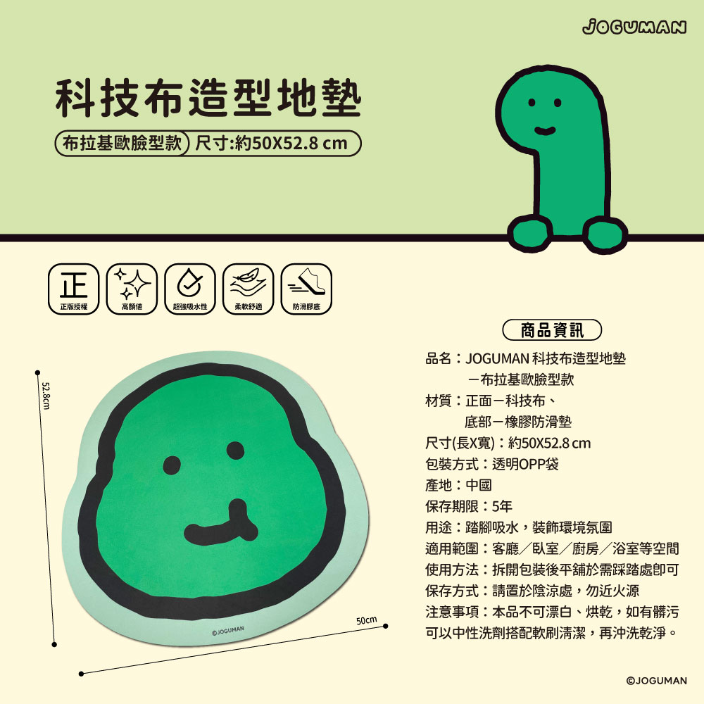 台灣 JOGUMAN 正版授權系列 特殊科技布料,擁有超強吸水性 親膚舒適|細緻觸感|踩踏不冰冷 底部橡膠防滑紋理,吸附力強,貼地不移動 尺寸:約50*52.8cm