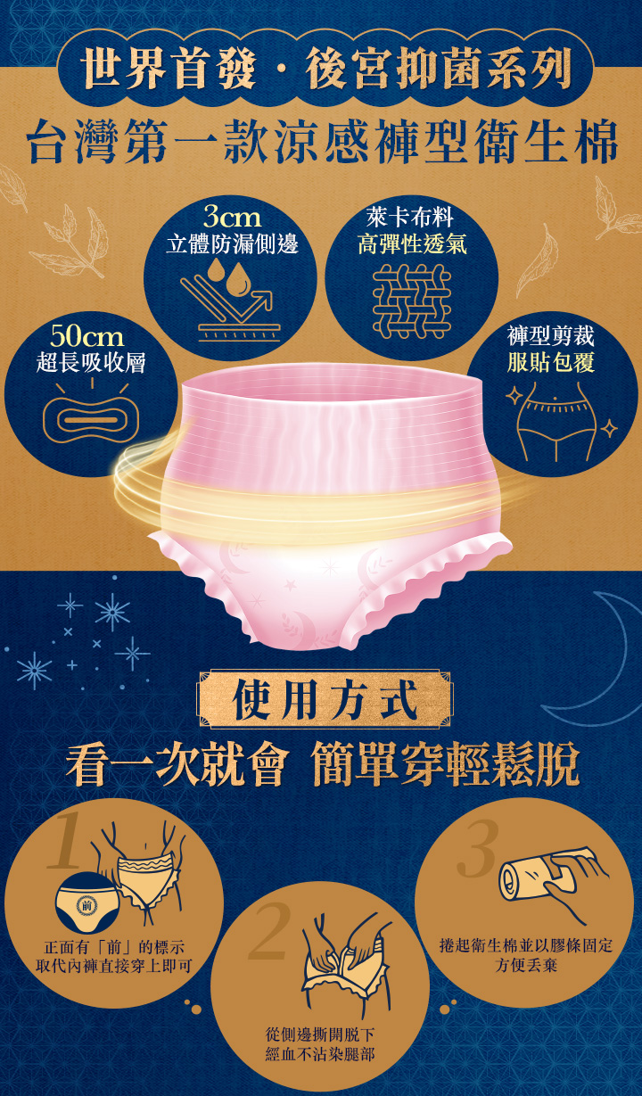 【台灣】超人氣女性護理品牌「Mdmmd」 四合一芯片(專利涼芯),吸收層50cm超長巾身 防漏側邊3cm夜晚好安心,超彈力萊卡面料親膚又透氣