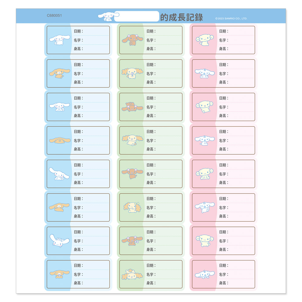 📣 台灣生活用品品牌 聯名系列 Sanrio 正版授權 — 玉桂狗身高尺 身高尺分成上下兩段,可自行黏貼組合, 標準清晰的身高刻度,記錄孩子成長的痕跡; 把身高尺貼在任何喜歡或適合的地方 附一張成長紀錄貼紙,成長變化一目了然