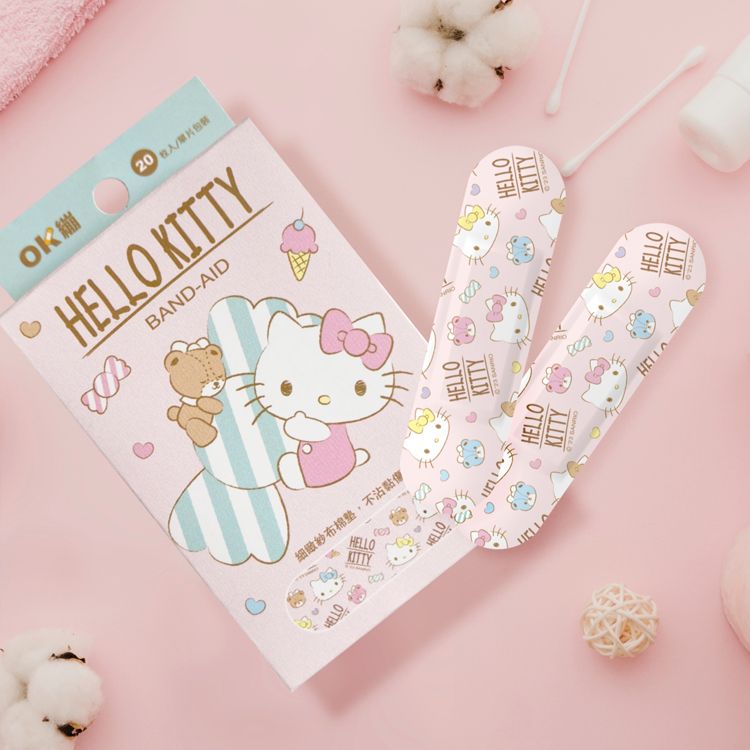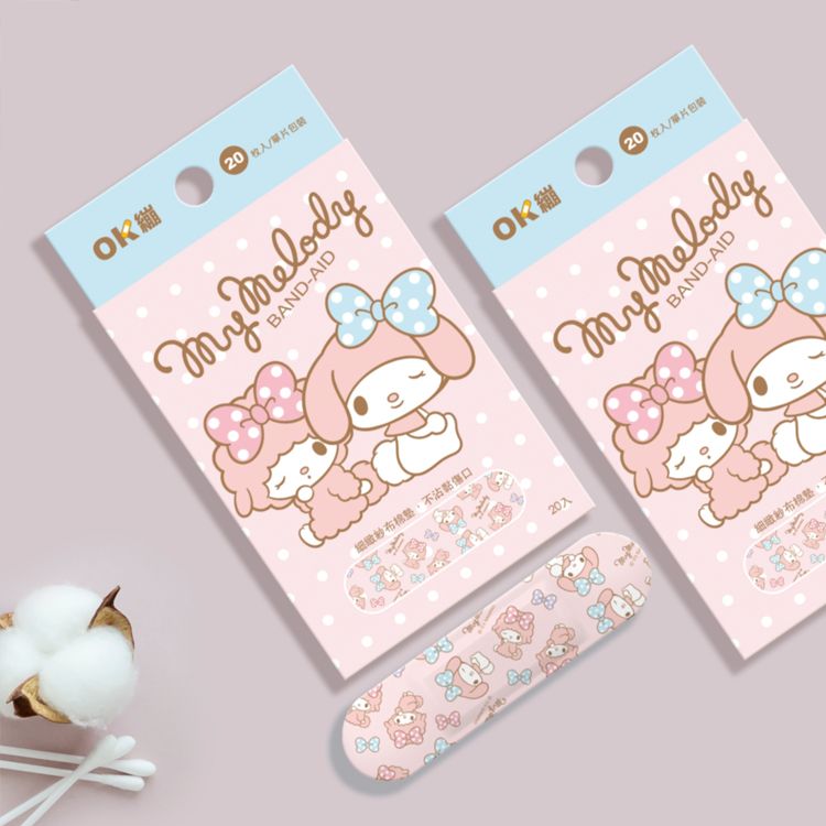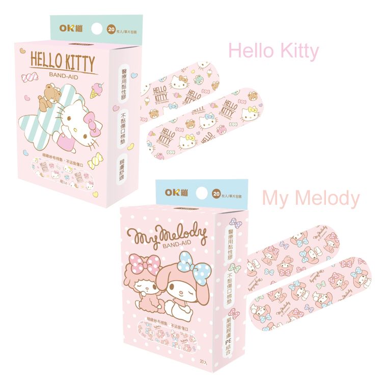 📣 台灣生活用品品牌 聯名系列 Sanrio 正版授權 — 醫療用創口貼 台灣製超防水醫療用黏性膠, 親膚舒適 不黏傷口棉墊,減少敷料更換時疼痛感 尺寸約:1.9x7.2cm 商品規格:20枚入/盒 材質:PE、不沾黏棉墊、醫療級壓克力膠