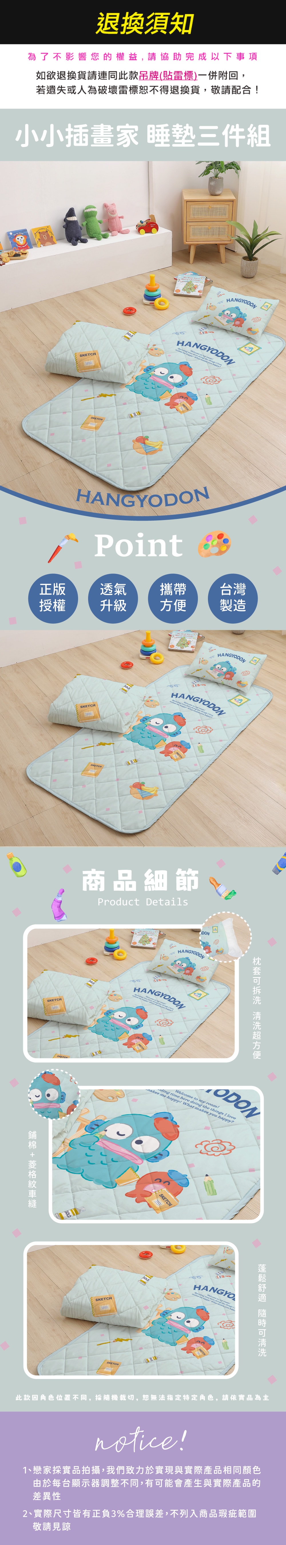 【台灣】SANRIO 兒童三合一睡墊組(水怪)